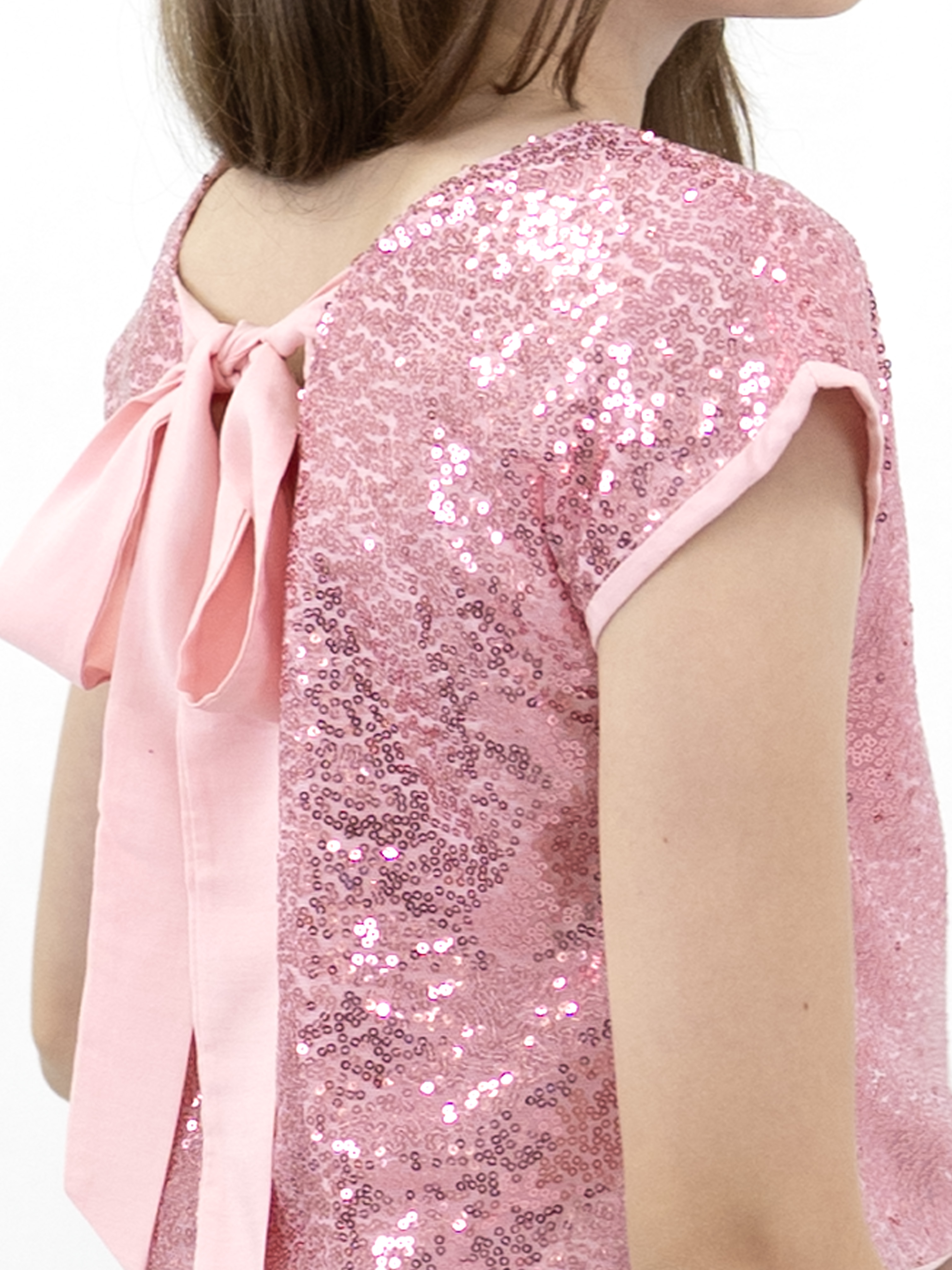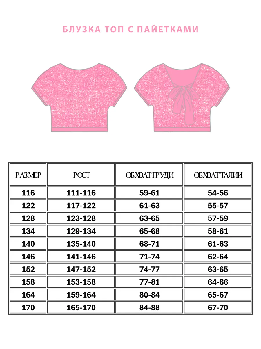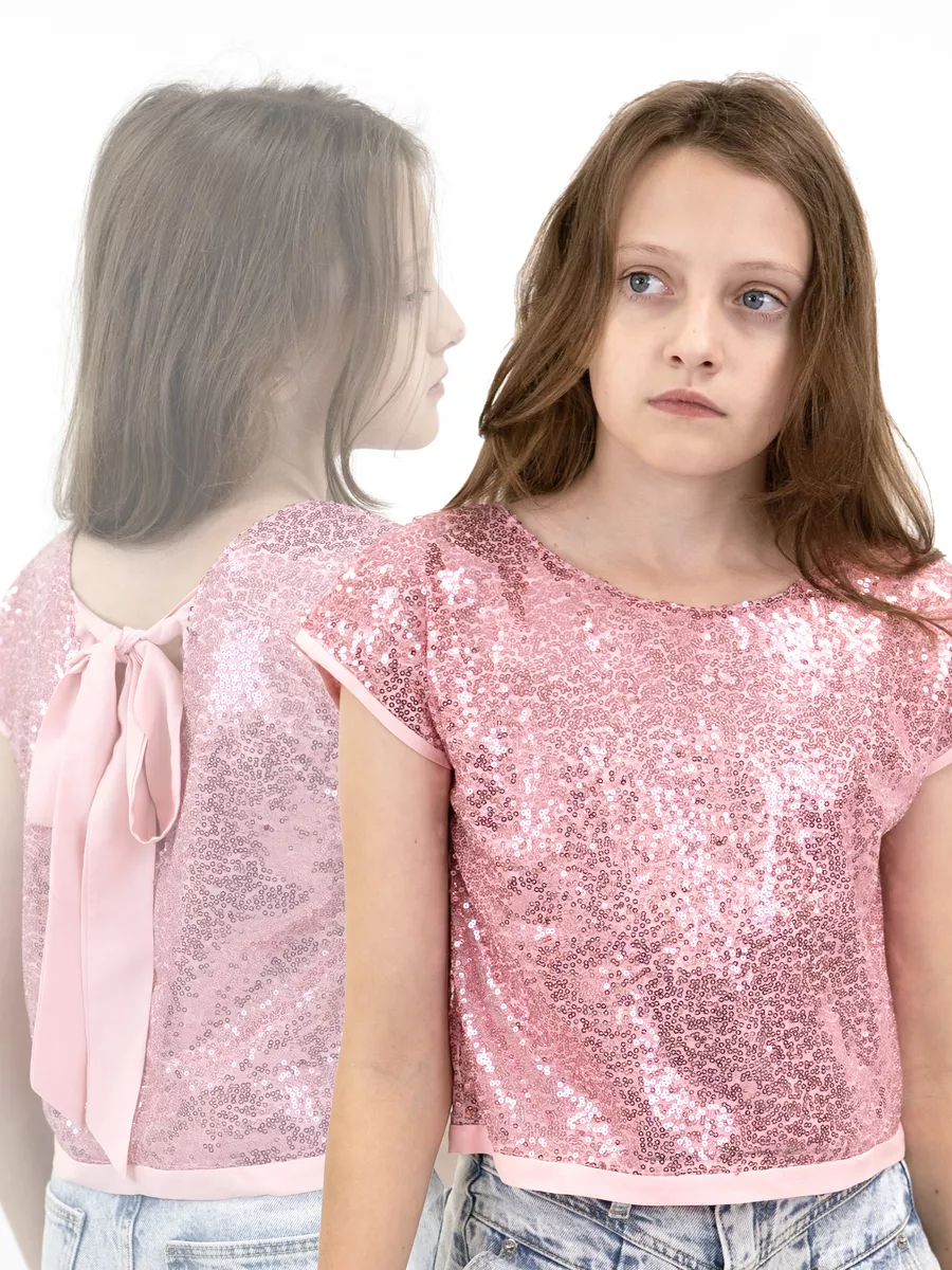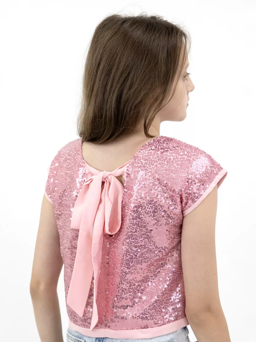 Наш кроп топ для девочек - это стильная и модная нарядная блузка свободного покроя без воротника. Предназначен он как для детей, так и для подростков. Подклад выполнен из штапеля, в составе которого только натуральные ткани. Нарядный топ с блестками выглядит особенно привлекательно, а открытая спина делают его великолепным выбором для особых случаев, таких как день рождения, новый год, выпускной, вечеринка. Одним из особых элементов дизайна можно считать бантик на спине, который добавляет нотку изящества и шарма. Блестящий топ идеально сочетается с любыми нарядами. Завязки на спине помогают создать эффектный вид. Модель выполнена в форме футболки с круглым вырезом и короткими рукавами. Топ праздничный выглядит стильным, красивым и привлекательным и следует последним трендам моды и стиля. Пудровый топ так же выполнен и в других оттенках, чтобы соответствовать индивидуальным предпочтениям и вкусу каждой девочки. Благодаря своему трендовому дизайну, такая вещь станет отличным дополнением к гардеробу маленькой модницы.